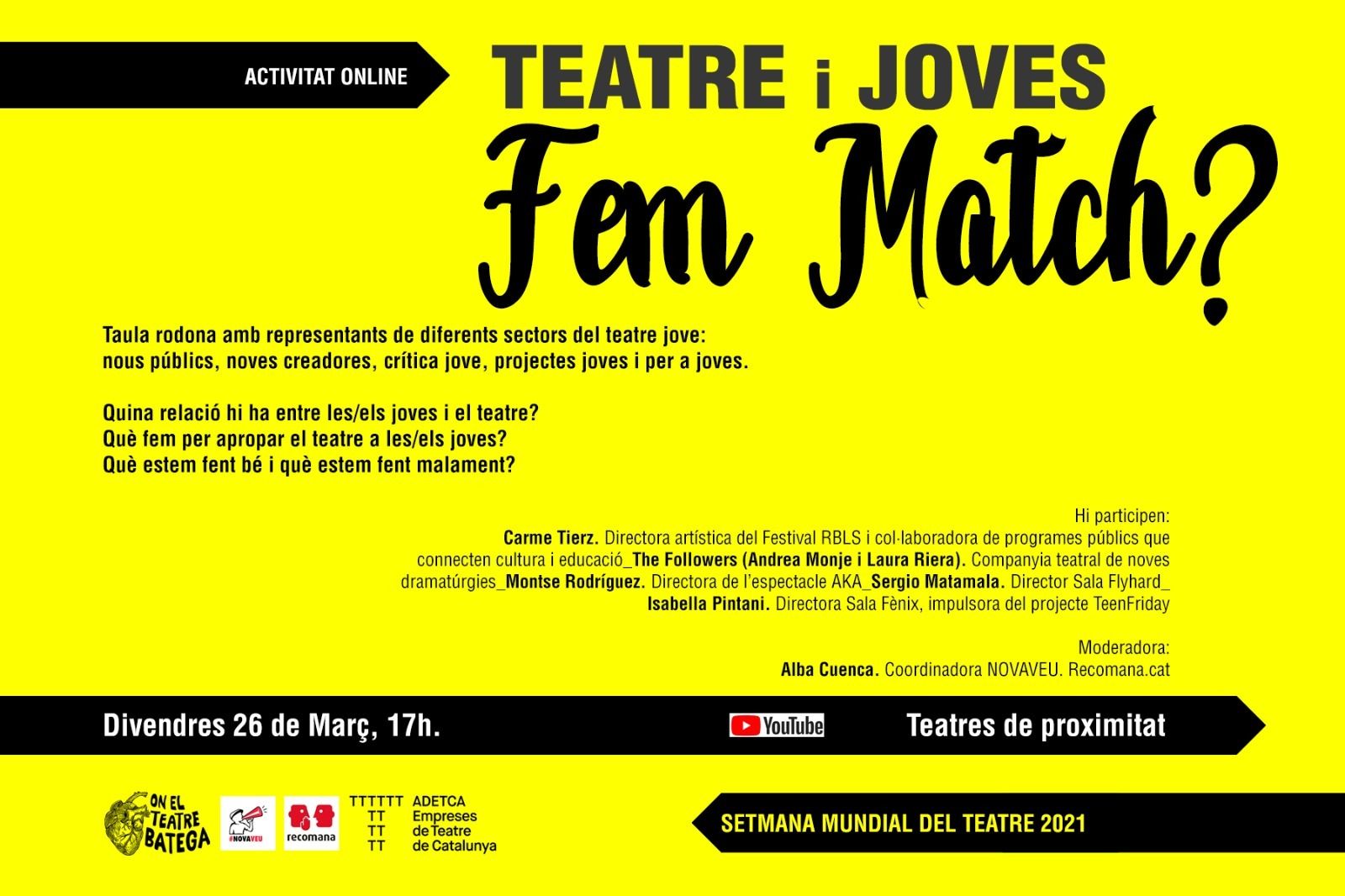 26/03 17h En línia al Canal de Youtube On el teatre batega.