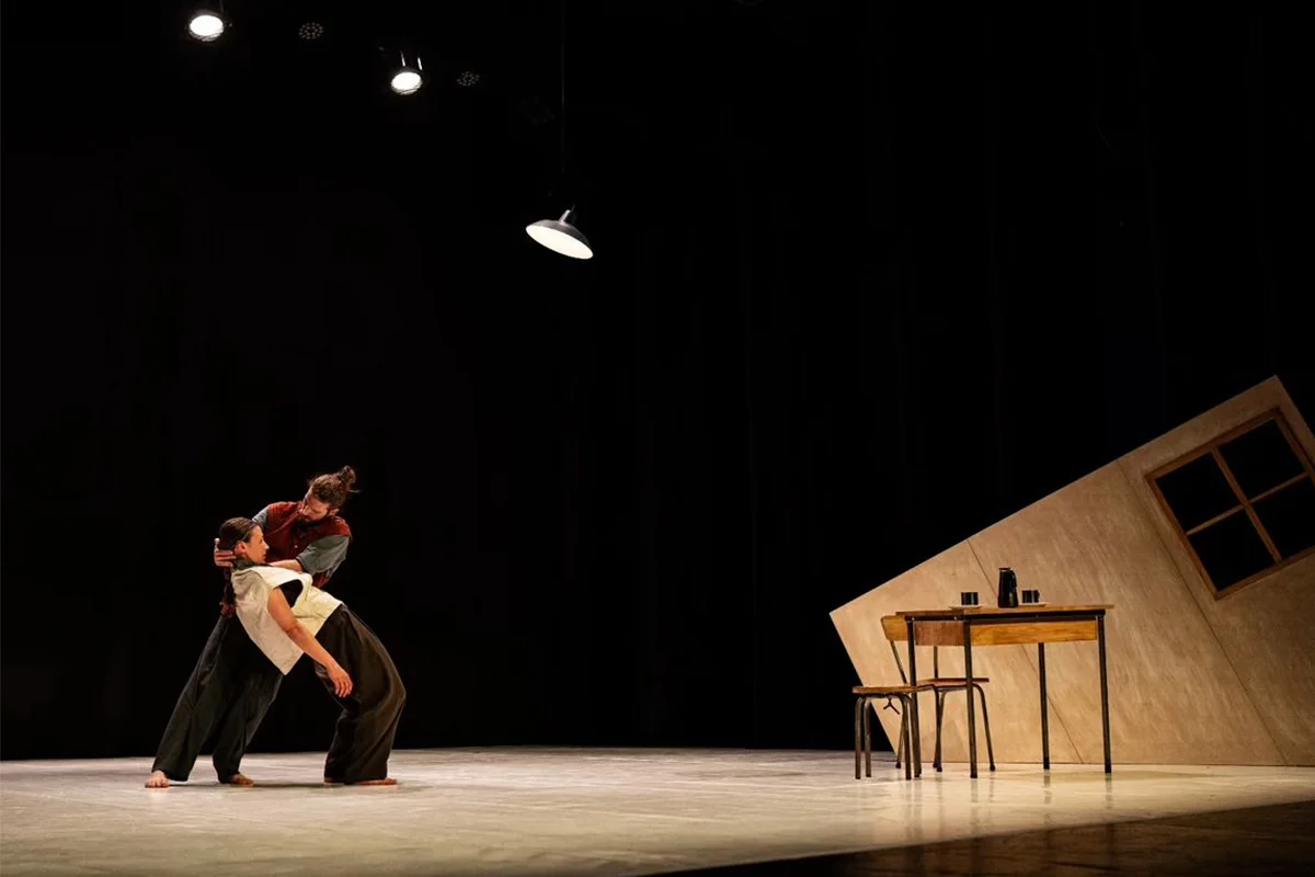 Aquesta peça de dansa teatre i objectes desvela el grotesc de l’ésser i alhora, celebra la bellesa que resideix en les nostres errades maldestres d’on emergeix el que és genuí del gest.