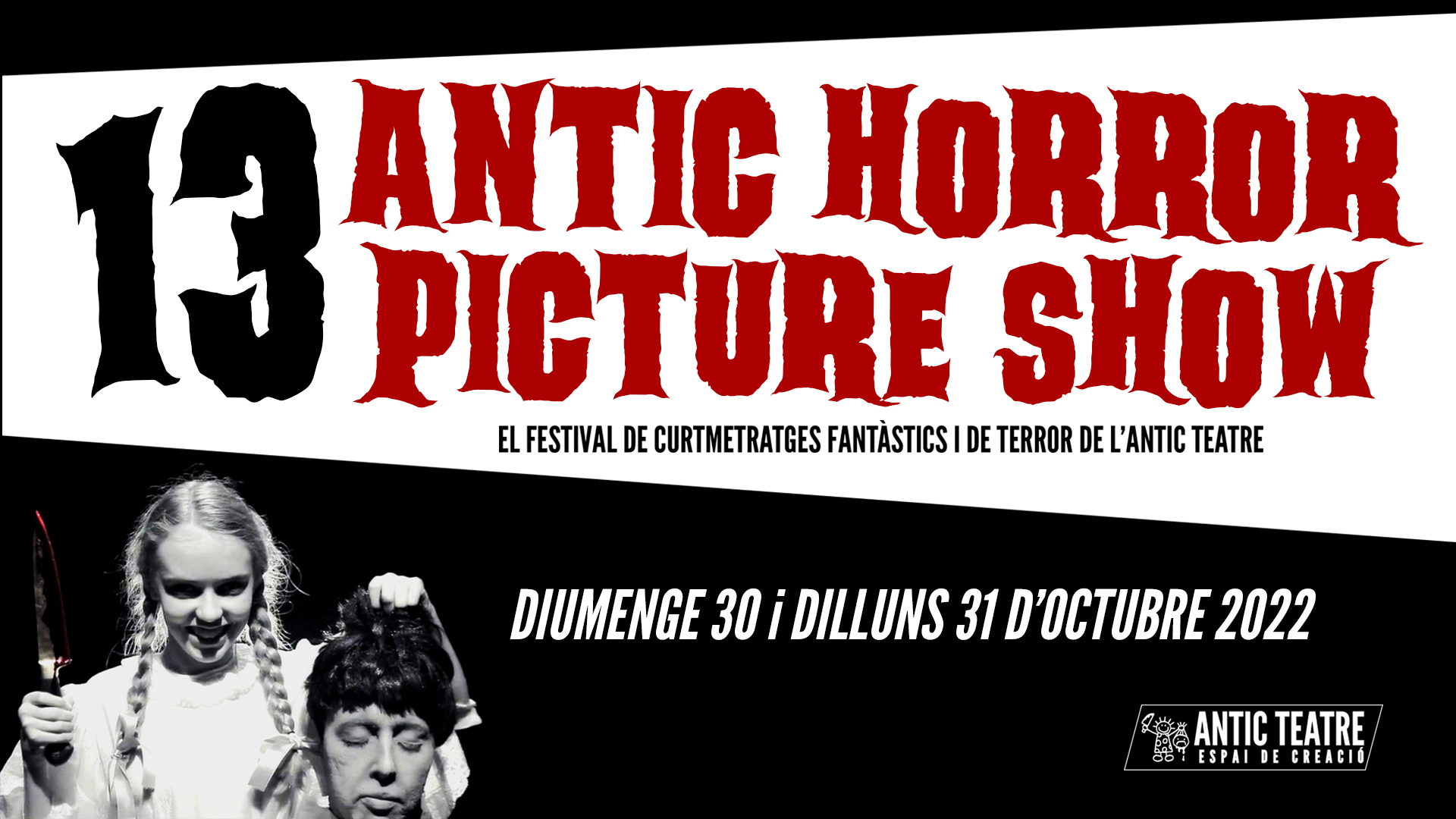 Trezena edició del Festival de Curtmetratges Fantàstics i de Terror, Antic Horror Picture Show, organitzat per l’Antic Teatre, on es projectaran els curtmetratges seleccionats i s’anunciaran els guanyadors. S’atorgaran dos premis: El “Premi del Jurat”, dotat amb l’estatueta daurada de la nena de l’Antic i 500€ i el “Premi del Públic”, dotat amb l’estatueta de platejada de la nena de l’Antic i 300€.