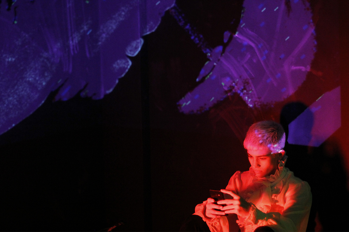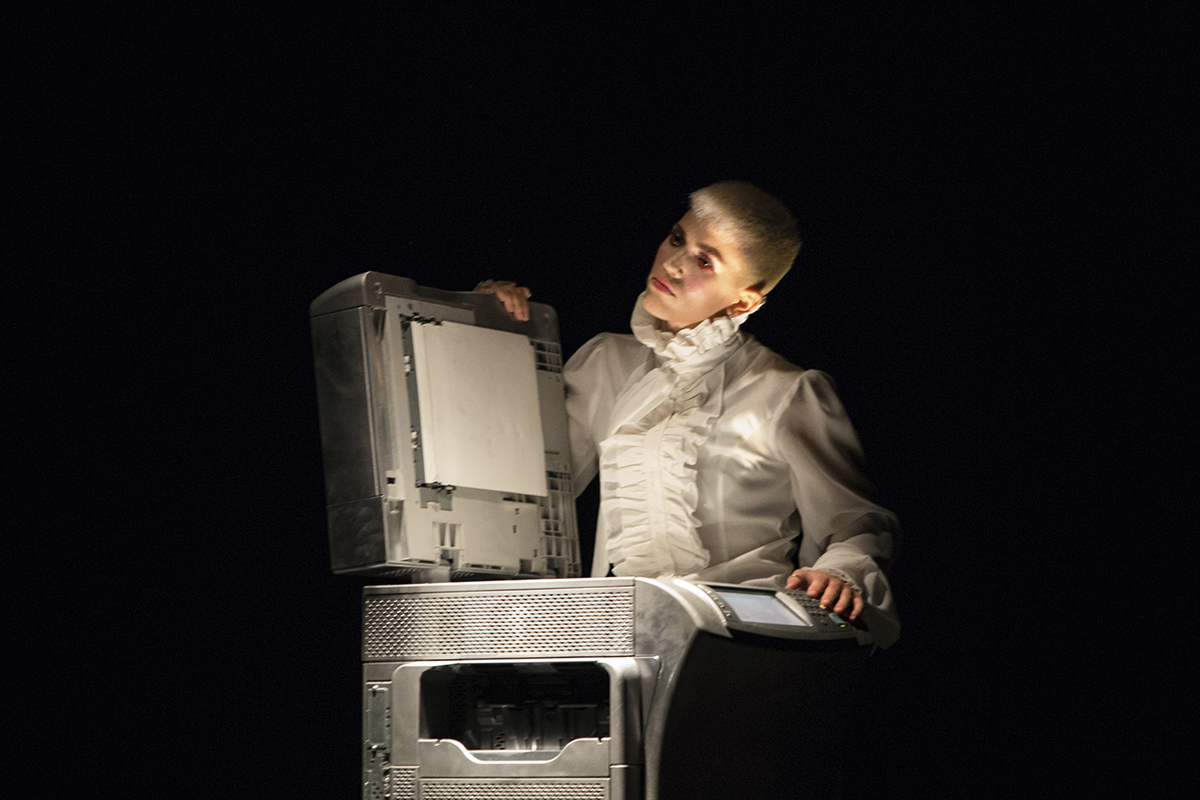 En aquesta rave rococó, una pantalla on no paren de projectar-se textos, una fotocopiadora hiperactiva, un DJ, una ballarina de dansa urbana i un pintor sotmeten l'espectador a un ritme creixent.
