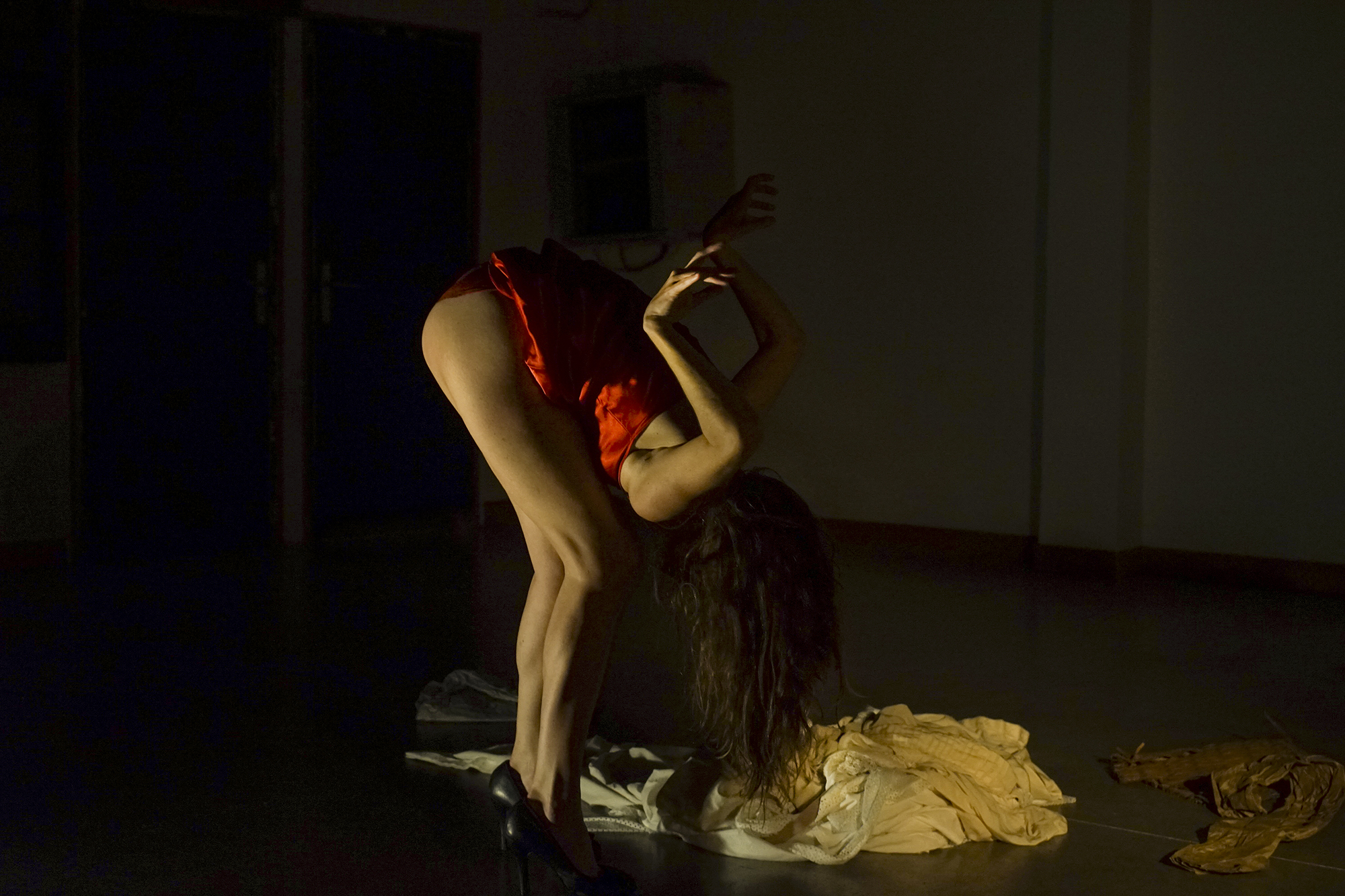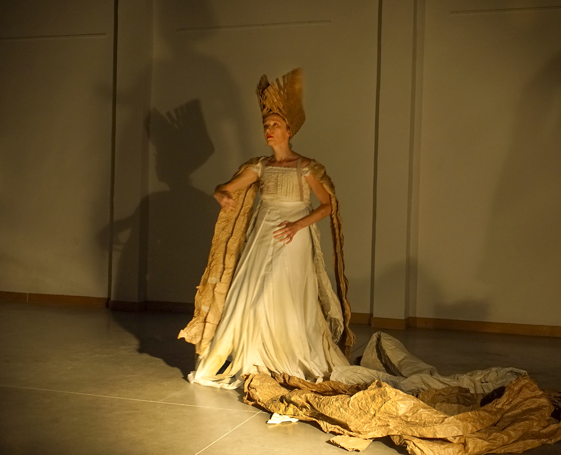 Aquesta peça de 50 minuts de durada forma part d’un tríptic que combina dansa Butoh, veu i so en viu per a proposar perspectives múltiples o narratives simultànies sobre el cos-matèria, i el seu viatge pel temps i l’espai. És un cos de treball que busca dialogar amb, i reflexionar sobre, el moment present de la història. La destrucció i la construcció són temes fonamentals en la dansa Butoh i semblen més rellevants que mai en aquests temps de crisis múltiples. Què és el que està sent destruït? Quins icones estan sent esfondrats? I què és el que estem tractant de construir? Sobre quins fundacions? Es pot entreveure una dona, o el cos d’una dona, en diferents fases. Fantasmagòrica, històrica, atemporal, icònica, desconstruida, animal, escultòrica, concreta, plàstica, pura matèria en moviment, paisatge en transformació. Un cos, una veu, un instrument que van més enllà dels seus límits i trenquen les expectatives que generen. No hi ha un sol pols, un centre tonal, un registre formal, estem en procés, en vibració constant.