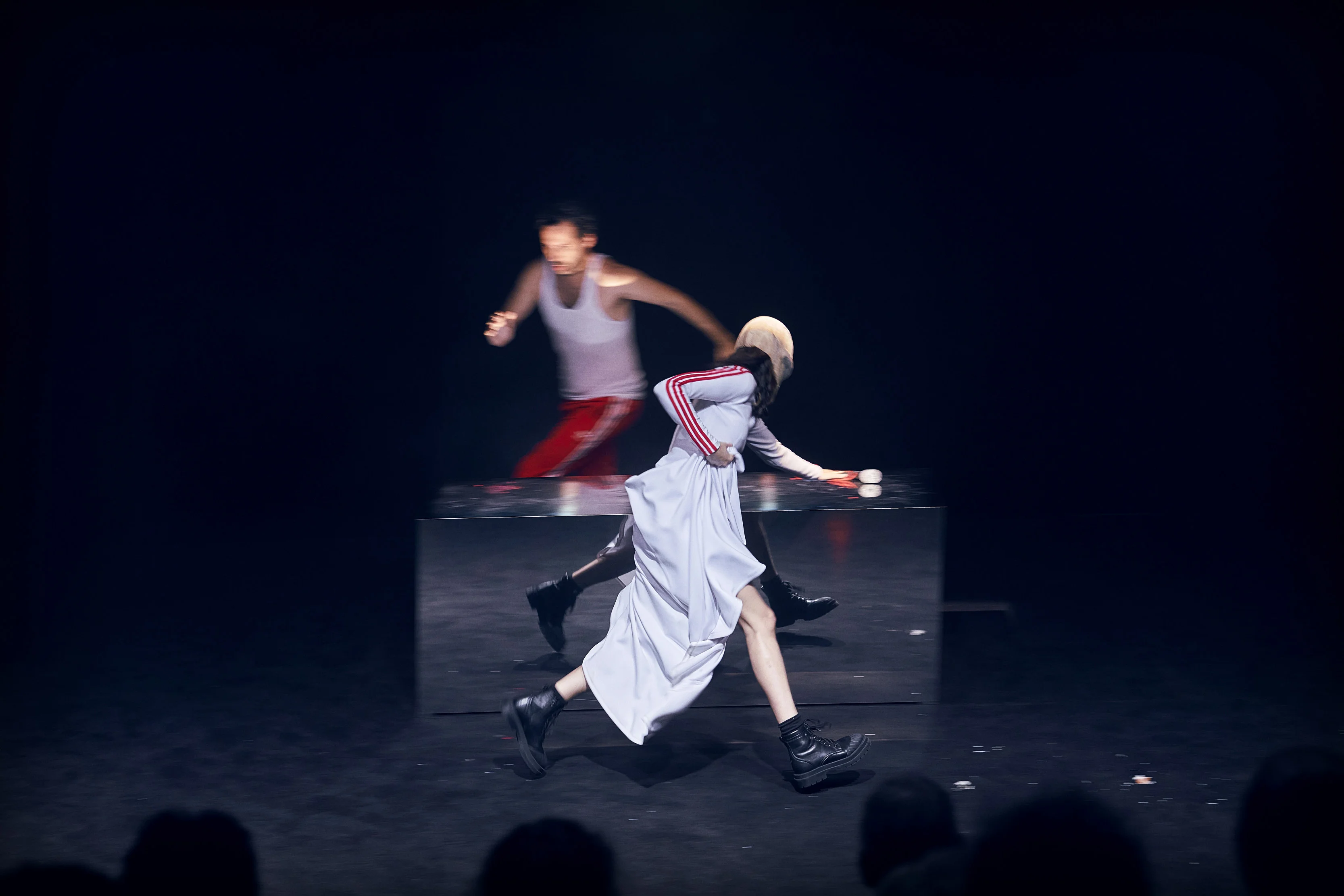 Del magnetisme i la capacitat de connexió amb el públic de Guillem Albà i la provocació escènica d’Andrea Jiménez, neix aquest exercici teatral visceral i personal que hibrida performance, humor, paraula, i gest.
