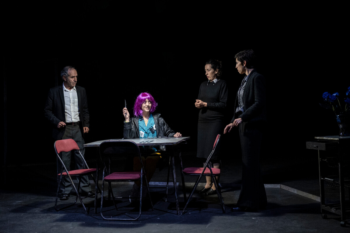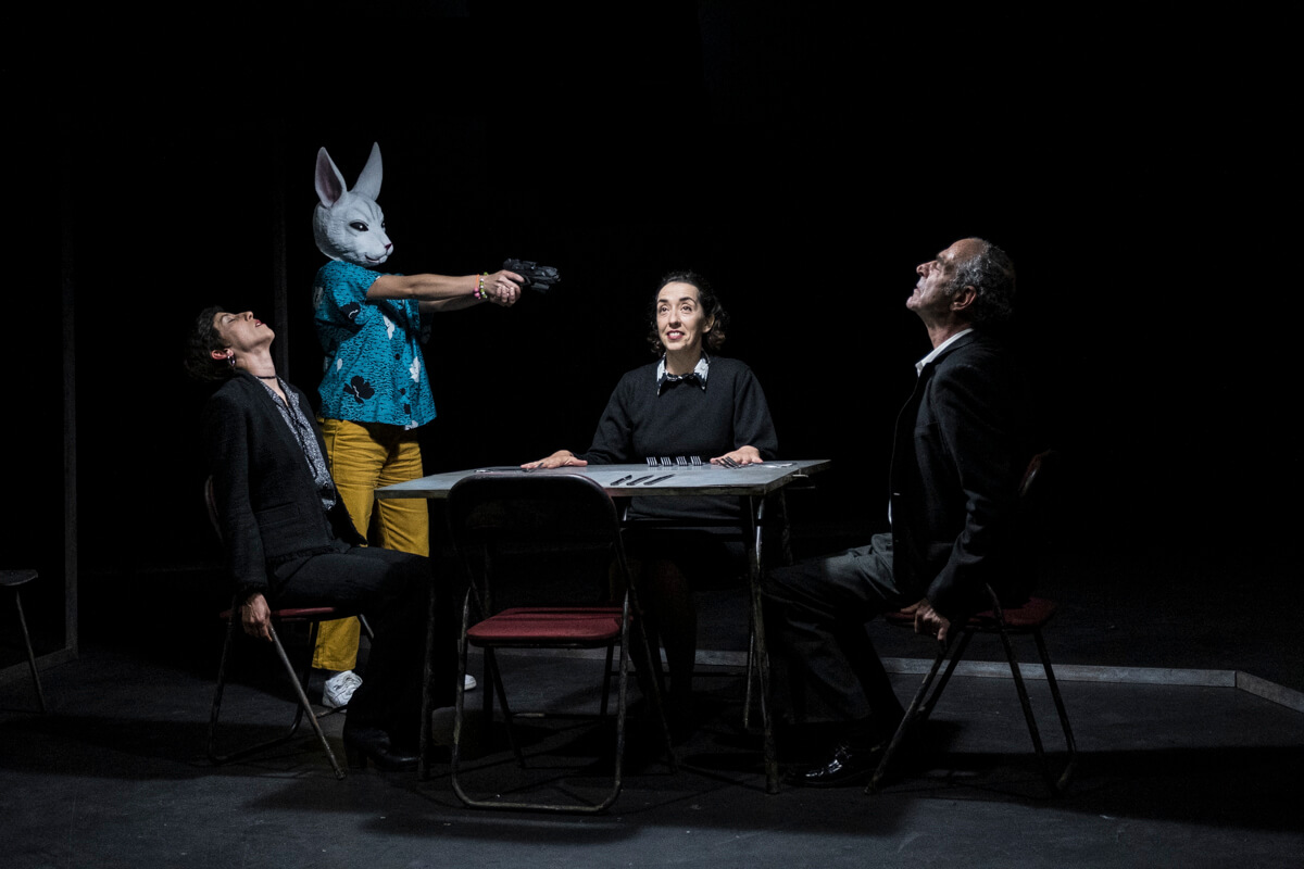Durante toda la pieza, los personajes tendrán que ejercer un control extremo para que sus pensamientos no tomen forma y no se hagan reales, y tanto las escenas cómicas y surrealistas como los conflictos más profundos pasan por un mecanismo de censura. Se equivocan y vuelven a empezar en un sistema de prueba y error: entran en un bucle interminable, un bucle en el que las palabras y las acciones se repiten una y otra vez. Cada vez que imaginan algo, esta imaginación entrará en conflicto con su estructura: se congelarán sobre el escenario y volverán a empezar, evitarán el error y tomarán otro camino. No hay forma de salir del bucle, porque no hay forma de salir de los traumas familiares.