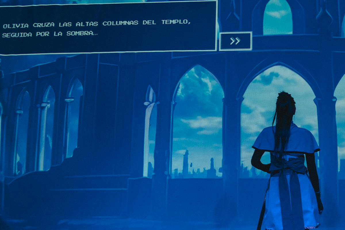 Un espectacle amb tecnologies immersives on el públic estarà envoltat per tres pantalles que recreen la realitat virtual d’un videojoc de gènere isekai (“isekai” és una paraula japonesa que vol dir “una altra dimensió”), de manera que el públic podrà fer un viatge entre mons juntament amb els personatges i els seus avatars en una altra realitat.